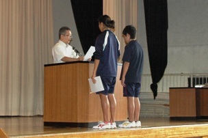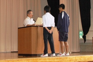 また、世田谷区中学校体育連盟夏季総合体育大会の表彰が行われました。参加したみなさん、おめでとうございます。