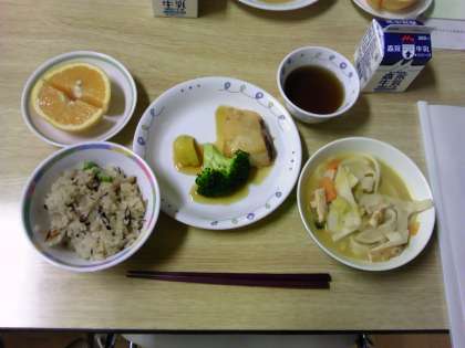 夕食の時間です。ほうとうです。いっぱい食べましょう。