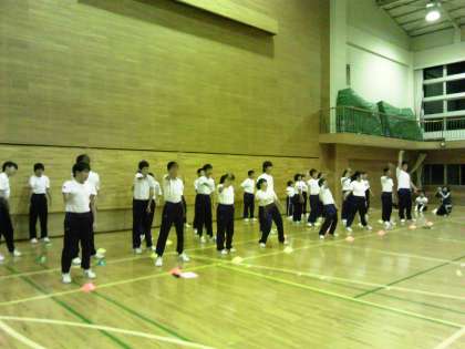 本日メインイベント、学級紹介です。弦巻中は嵐のワイルド・アット・ハートの曲に合わせてダンスです。