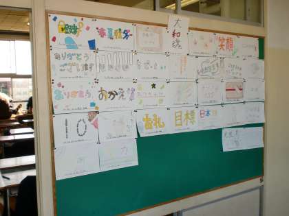 今日の教科「日本語」の時間にポスターを作成し、展示しました。