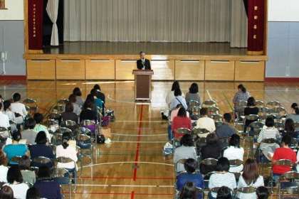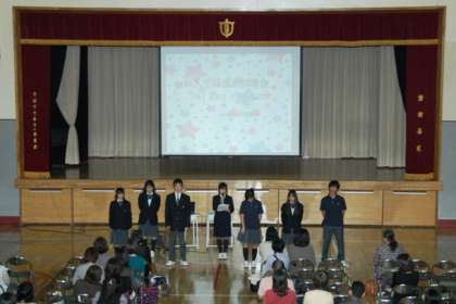 10月13日(土)、本校体育館において新入生保護者説明会が行われました。ブラスバンド部の演奏の後、本年度から新しく変わった「標準服の紹介」や「生徒会活動の紹介」を生徒会役員が行いました。また、「本校の教育課程」「進路状況」「生活指導」「優郷の学び舎9年教育」などについて説明いたしました。