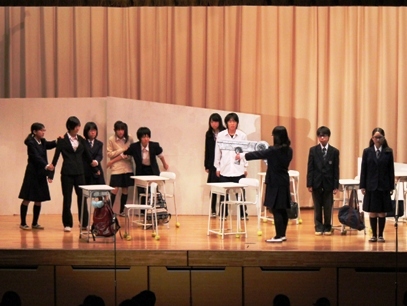 10月27日(土)、本校体育館において合同発表会の舞台発表あり、「自立部と有志によるダンス」「1年生による職業調べ発表」「2年生による上級学校訪問報告」「煎茶部発表」「英語部のスピーチ」「演劇部の演劇」「3年女子体育のダンス」「3年生男子体育のダンス」「ブラスバンド部による吹奏楽」などの発表が行われました。生徒たちは今まで積み重ねてきた練習の成果を十分に発揮することができました。本校生徒のACTIVEな活動を保護者や地域の皆様に楽しんでいただけたことと思います。