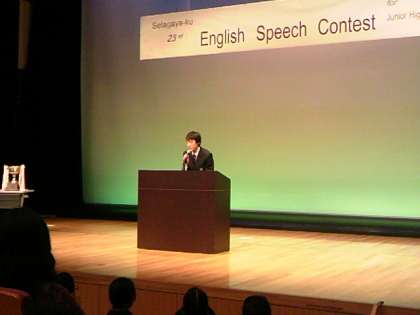 本日、成城ホールにて英語スピーチコンテストがおこなわれています。レシテイション部門の1番目で緊張したようです。