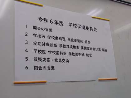 養護教諭より、本校の保健指導等について、健康診断の結果、子どもたちの身体の状況、保健室の来室状況など、報告があり、学校医さんに補足をしていただきました。栄養士さんからも給食の様子など、お話していただきました。