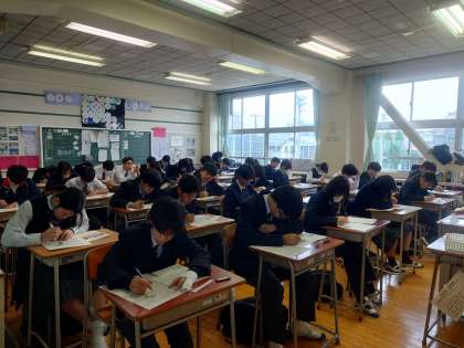 期末考査二日目 11月15 日(金) 公開日 2024/11/18 更新日 2024/11/18 できごと 期末テスト二日目も集中して頑張りました。 あと一日。土日を挟んで、勉強時間たっぷり取れますね。 ファイト!! いいね(0)