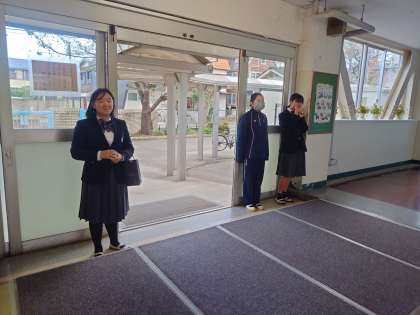毎週火曜日、生徒会役員が、あいさつをしっかりできるようにと、調査をしています。相手の目を見て挨拶ができるといいですね。