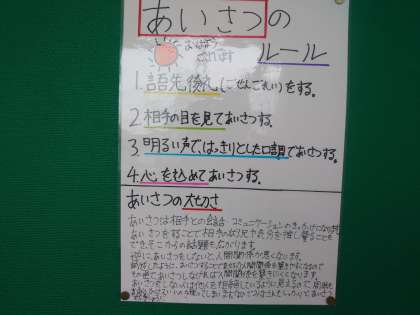 挨拶のルールや挨拶の大切さが書かれたポスターが掲示してあります。