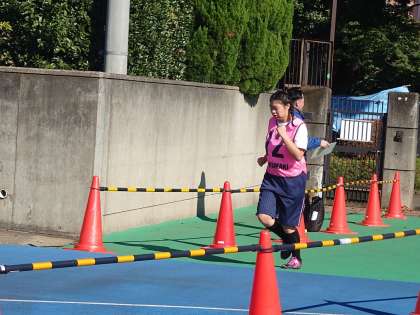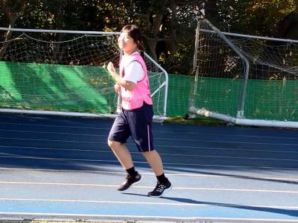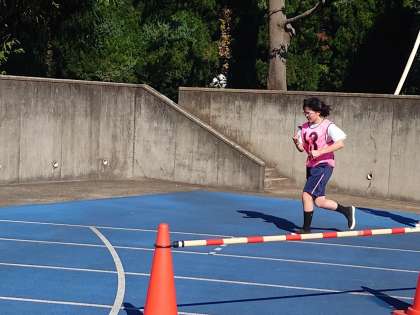 グラウンドの入口にいる鈴木先生から声援が飛びます。