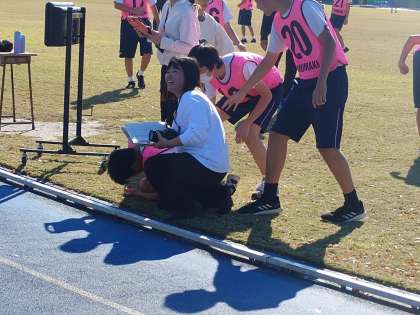 I組合同マラソン大会12 11月22日(金) 公開日 2024/11/24 更新日 2024/11/24 できごと 弦中一番ゴールしました。 入賞です。 次もデッドヒートでゴール。最後の力を降りしきって走り切ります。 ナイスファイト! 走り終わって倒れ込んだ仲間に「お疲れ様」と声をかけています。 いいね(0)