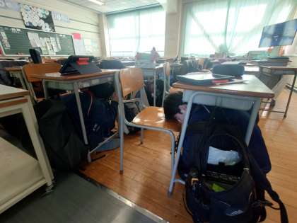 一時間目、シェイクアウト訓練です。