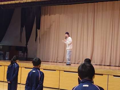 今年も体育の授業がダンスの季節になりました。校歌ダンスもスタートして、3年目。1年生の最初の授業は、校歌ダンスを作っていただいたARATAさんに来ていたたきました。