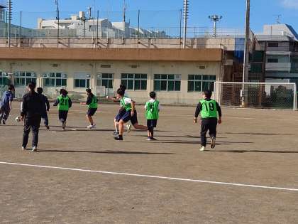 広いコートをボールを追って駆け回ります。ナイスパス!!