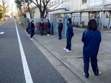 生徒会役員と生活委員のコラボキャンペーン中。みんなの元気な挨拶期待してます。
