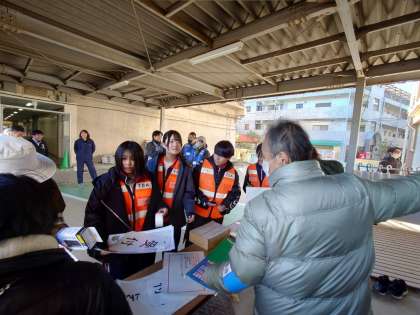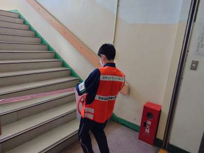 受付班も協力して準備を頑張りました。改修中で、いつも机があるところになく、すぐに対応しました。