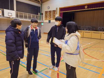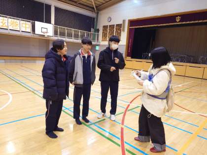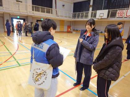 地域防災課の方と大学生のボランティア組織の方が来て、中学生が避難所運営に参加しているところの取材が入りました。3年生が最後にインタビューに協力しました。世田谷区で紹介されるそうです。