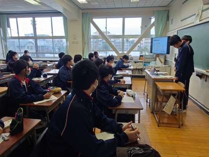 職場体験プレゼン発表1 12月19日(木) 公開日 2024/12/20 更新日 2024/12/20 できごと 2年生から1年生へ学びのバトン。 職場体験学習を終えて、事後学習の一環で、プレゼンを作り、1年生に発表する取り組みです。 いいね(0)