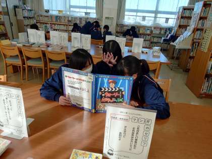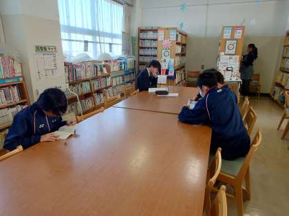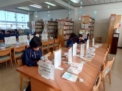 弦中生活 12月19日(木) 公開日 2024/12/21 更新日 2024/12/21 できごと 昼休み図書室です。 図書委員の活動、一生懸命本を読んでいる人たちがいました。漫画で読む人権コーナーはどうでしたか? いいね(0)