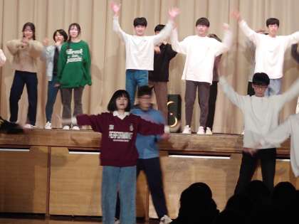 ダンス発表会3年生11 12月23日(月) 公開日 2024/12/24 更新日 2024/12/24 できごと B組ラストのダンスです。 最後は、笑顔でBポーズ。決まった!! 休憩に入り、後半戦です。 いいね(0)