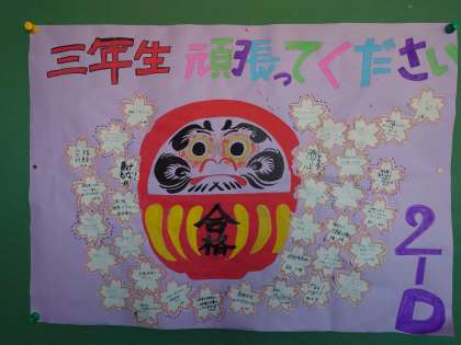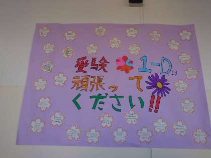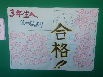 3年生を応援する掲示物を、1.2年生が作ってくれました。心温まるメッセージ。