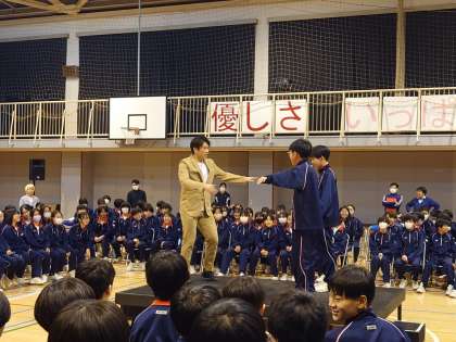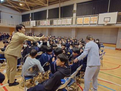 音楽座ミュージカルワークショップ2 2 月4日(火) 公開日 2025/02/05 更新日 2025/02/05 できごと 出演者のみなさんが、座席に誘導してくれました。ステージにも生徒が上がって、一緒にパフォーマンスをしています。 いいね(0)