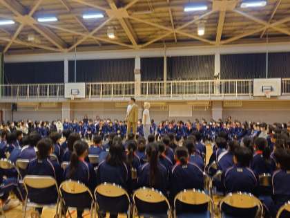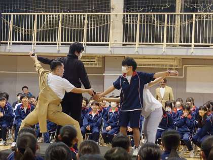 音楽座ミュージカルワークショップ17 2 月4日(火) 公開日 2025/02/06 更新日 2025/02/06 できごと ここでも、生徒が舞台を体験しました。 本当に大切なものは目に見えない。 心で見るんだよ! このシーンから何を感じましたか? いいね(0)