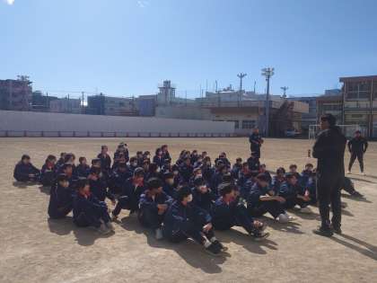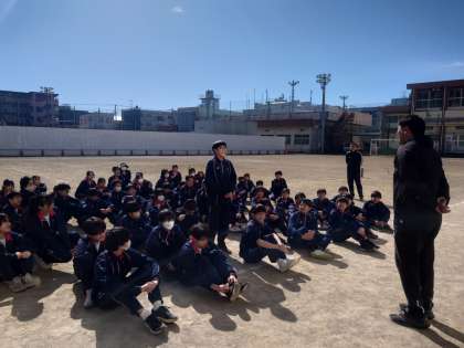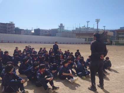 タグラグビー体験授業11 2 月6日(木) 公開日 2025/02/08 更新日 2025/02/08 できごと 最後まとめのお話。 生徒の感想。何人かの生徒が勇気を持って手を上げて、感想を言ってくれました。ありがとう。 ブラックラムズの皆さんから、下敷きをもらいました。 大切にしてね。 いいね(0)
