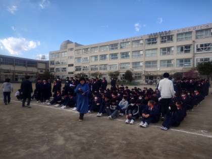 避難訓練も素早く静かに避難できました。火災なので、煙を吸わないように、マスクをしていない人は口にハンカチや手を当てるといいですね。