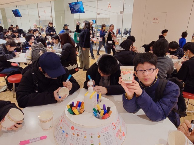 出来上がり!!マイカップヌードル、嬉しそうです