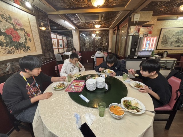 中華街で予約したお店で各班昼食中です。どの料理も美味しそうだなあ〜。