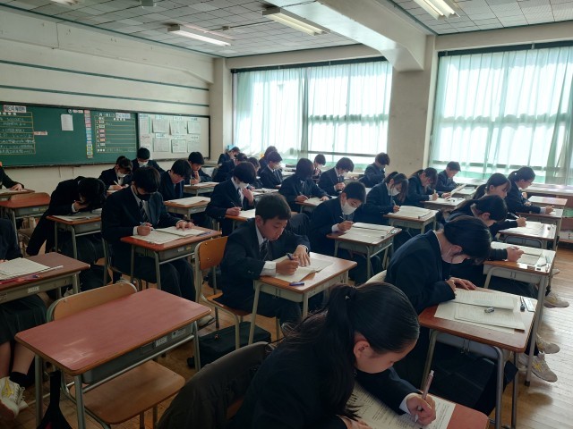 学年末考査3日目1 2月28日(金) 公開日 2025/02/28 更新日 2025/02/28 できごと 定期考査最終日。みんな集中して頑張っています。最後まで粘り強く頑張りましょう。 +7 いいね(0)