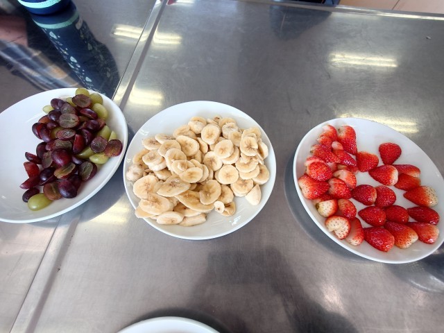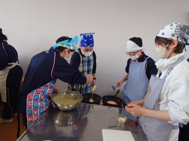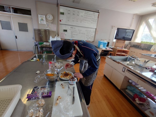 「上手に焼けたよ!!」そんな声が聞こえてきそうです。 焼けた人は、自分の食べるパンケーキに真剣にトッピングしています。