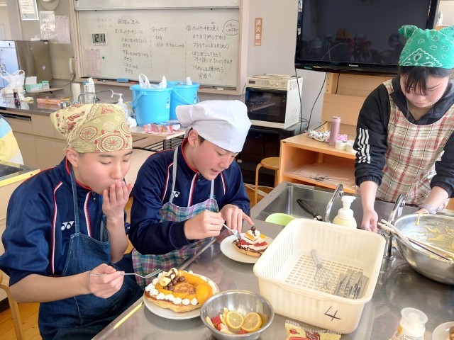 I組授業3 2月28日(金) 公開日 2025/03/01 更新日 2025/03/01 できごと 出来上がった班からいただきまーす。みんな笑顔です。美味しく出来上がりましたね。お家でもぜひ作ってみてください。 +7 いいね(0)