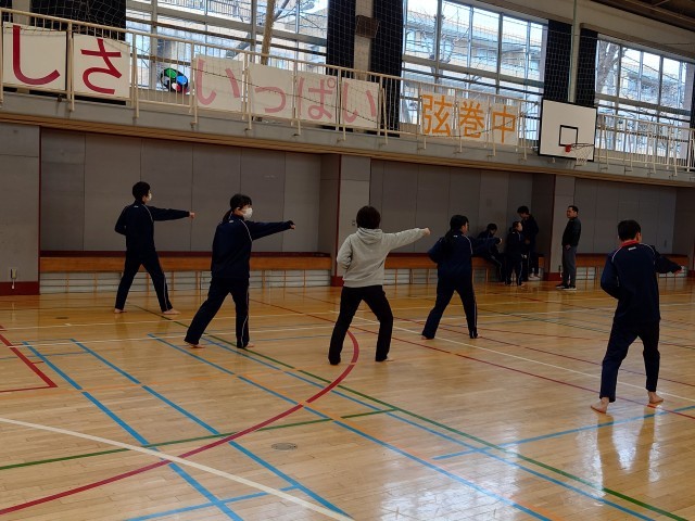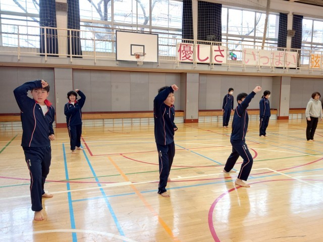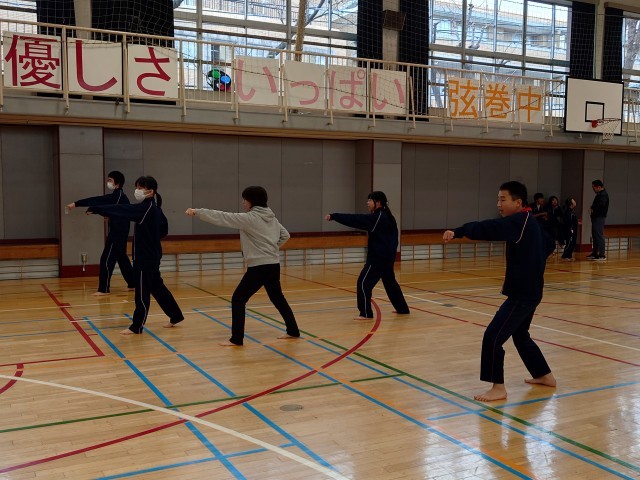 弦中生活1 3月4日(火) 公開日 2025/03/05 更新日 2025/03/05 できごと I組1時間目体育の授業。空手の発表会です。今までグループごとに練習を重ねてきた成果発表会。今最後の練習中です。 +3 いいね(0)
