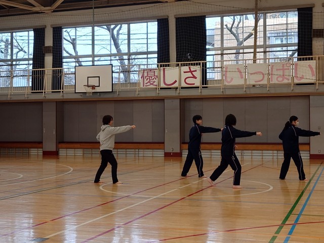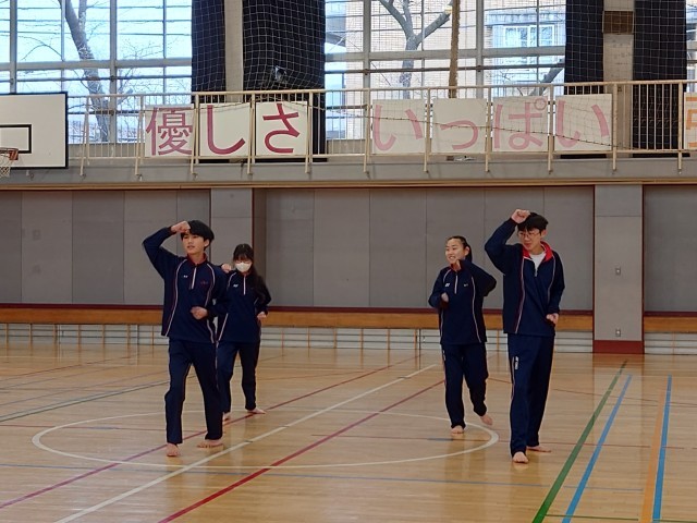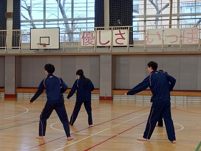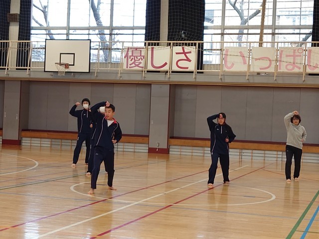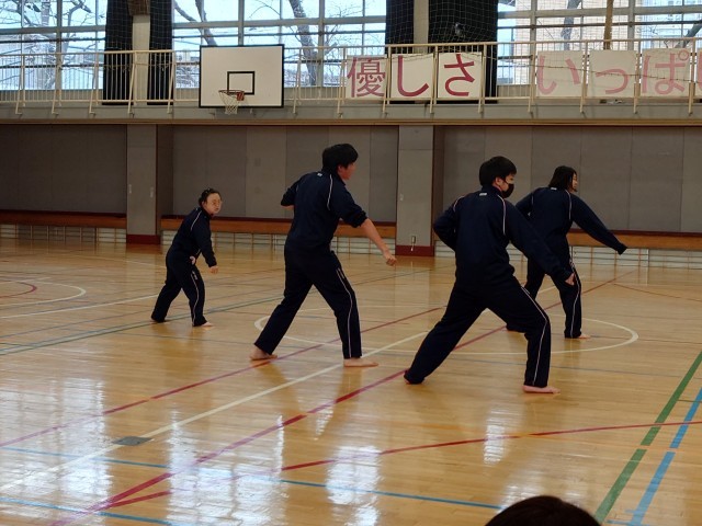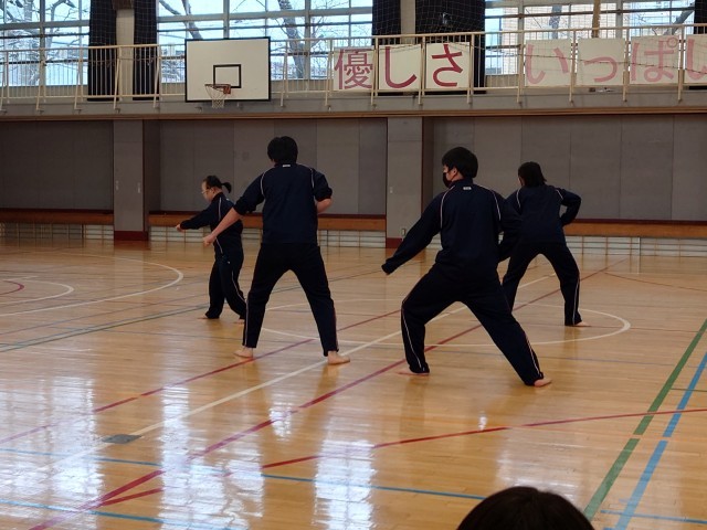 各グループごとの発表です。 どのグループも班長を中心にしっかり声が出ていて、一つ一つの型が決まっていましました。