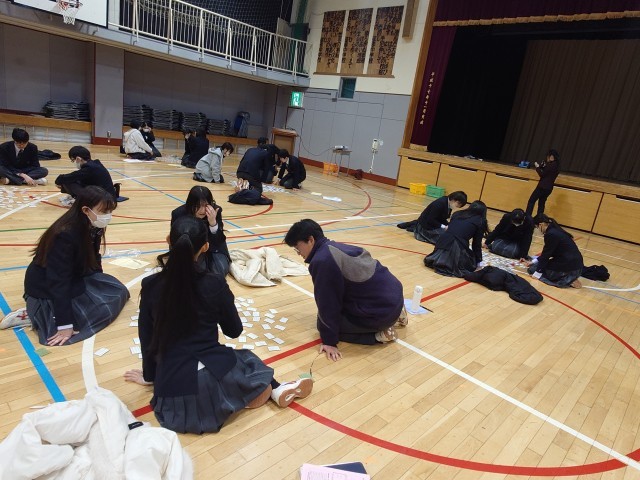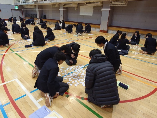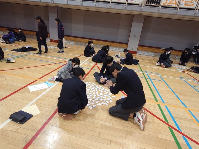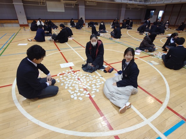 一時間目は、I組との交流活動、百人一首大会です。