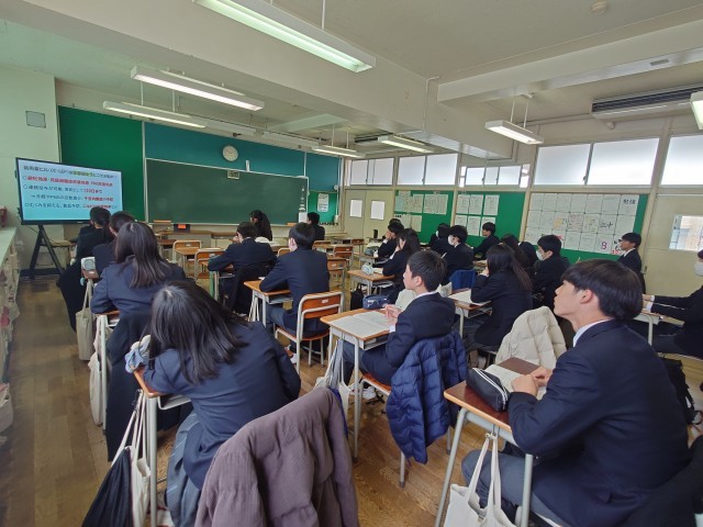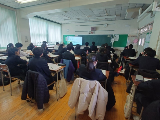 命の授業1 3月6日(木) 公開日 2025/03/07 更新日 2025/03/07 できごと 3年生産婦人科医による命の授業です。リプロダクティブ・ヘルスライツの理解促進のための授業でもあります。急遽、お産が入ってしまい先生が来ることはできなくなってしまいましたが、前撮りしていただいた資料での講演会ができました。これから生きていくために、性別関係なく大切な知識です。しっかりと学ぶことができました。明日は校外学習です。 +2 いいね(0)