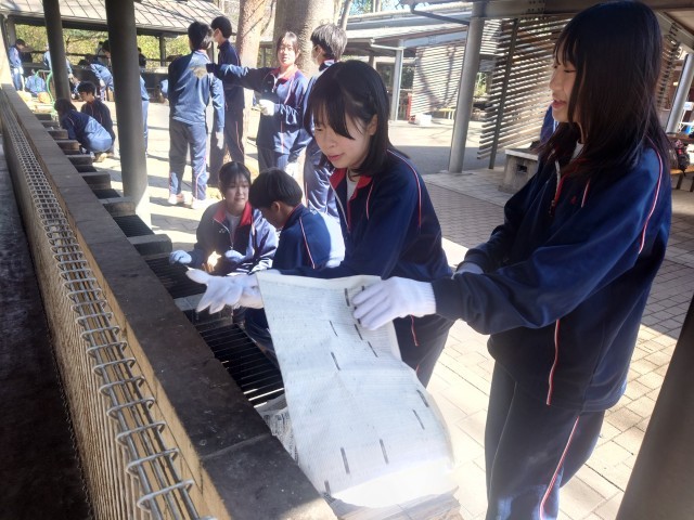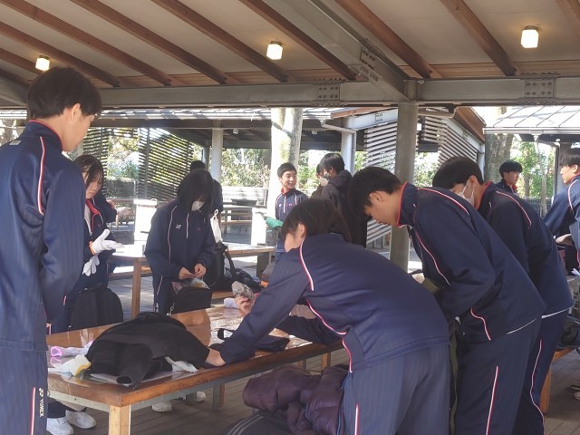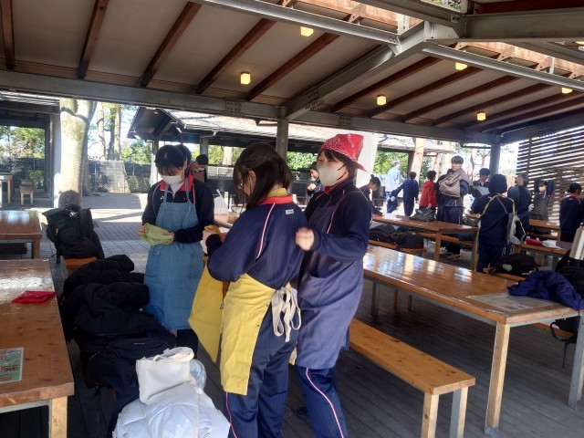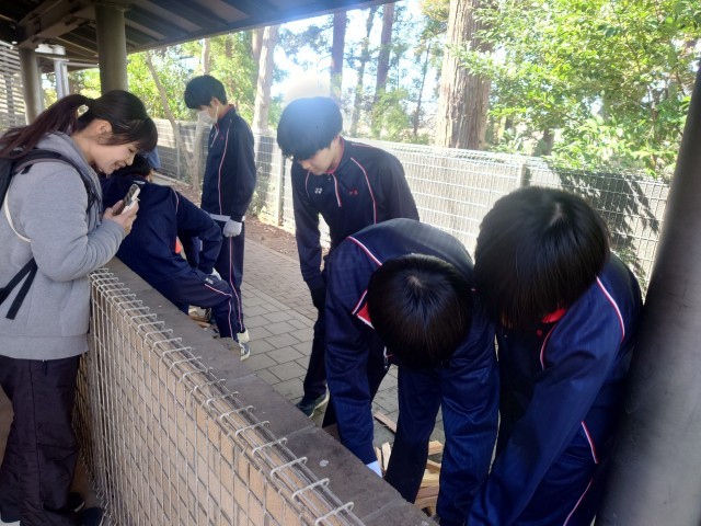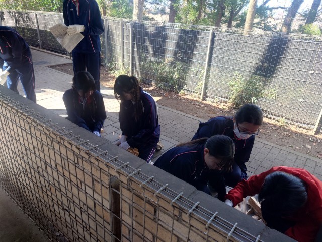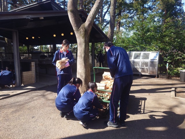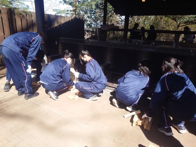 かまど班と材料班に分かれ、かまど班の人たちは、かまどづくりに挑戦。上手にできるかな。