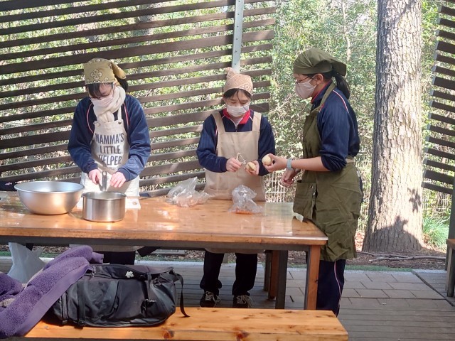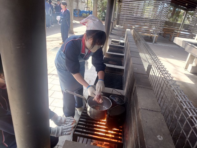 3年校外学習7 3月7日(金) 公開日 2025/03/07 更新日 2025/03/07 できごと いよいよかまどに火が入りました。暖かい!!飯盒を置いて、鍋でまずお肉を炒めます。キャーキャー、ワーワー楽しそうです。 +7 いいね(0)