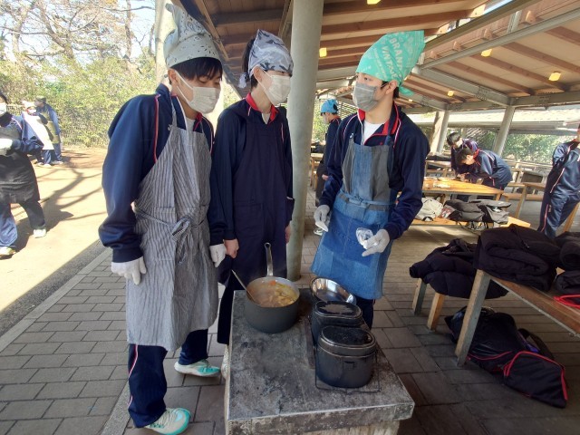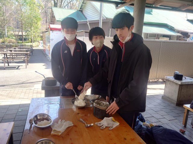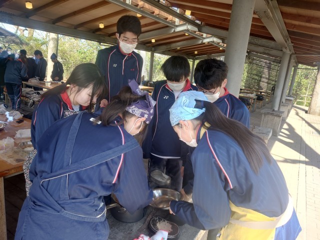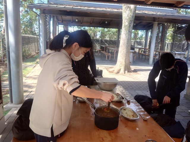 出来上がった班から盛り付けをして、さあいただきます。