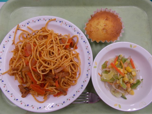 ぐりとぐらのケーキはリクエストメニューです。特に1年生から人気がありました。