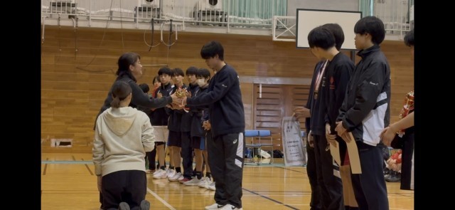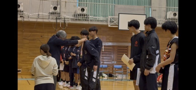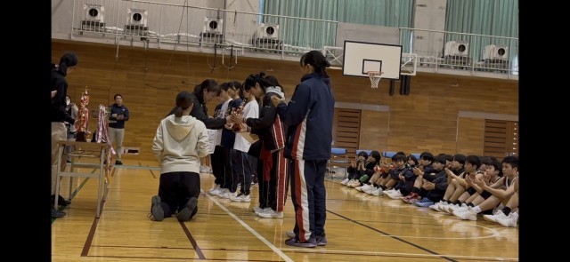 バスケットボール部表彰式。男子3位、女子5位、男女ともに入賞おめでとう。頑張りました。