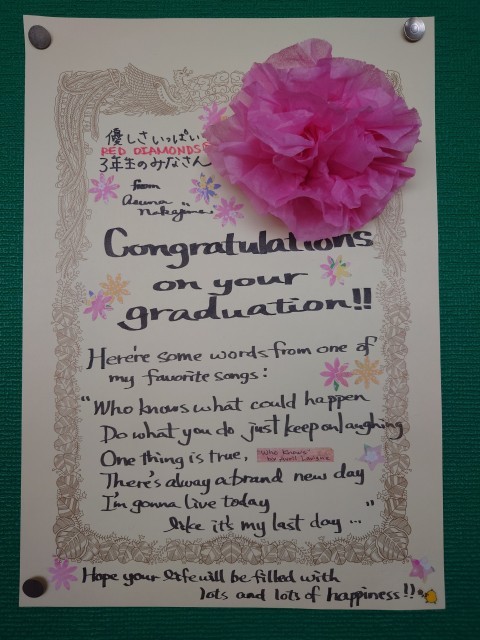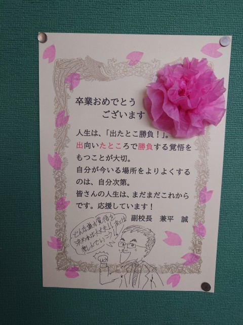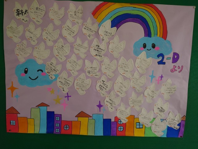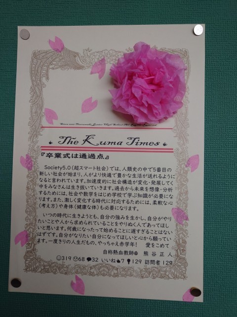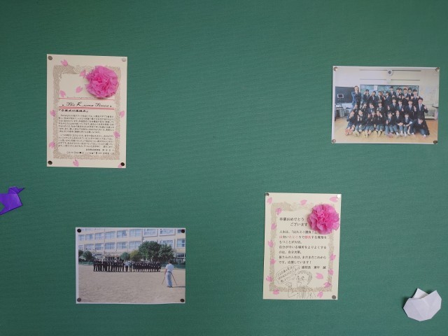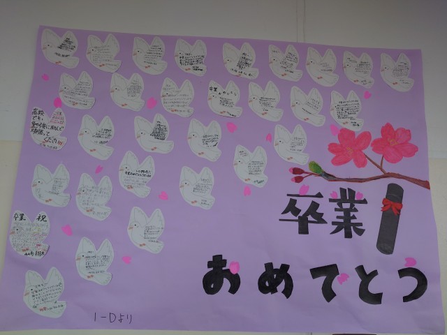 卒業式に向けて1 3月14日(金) 公開日 2025/03/14 更新日 2025/03/14 できごと 生徒会本部役員、学級委員の皆さんで、卒業生にお祝いメッセージを作りました。今年は在校生だけでなく、先生たちのメッセージ企画もありました。 +4 いいね(0)