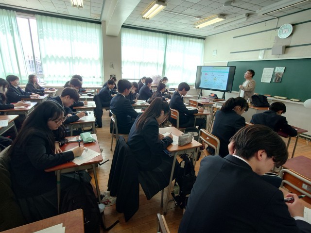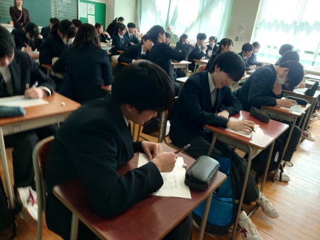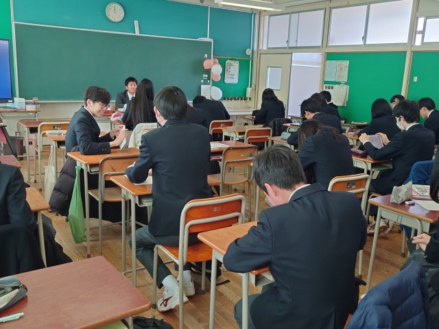 金融教育講話中のクラス、アルバム書き合い中。まだまだ卒業に向けての大切な時間を過ごしています。