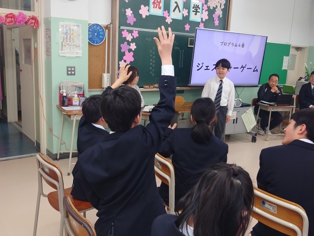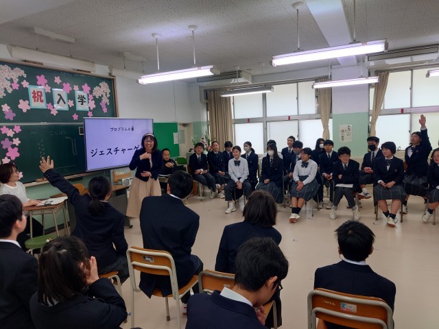 I組では、2.3年生が新入生を迎えるために対面式を開きました。今年も自己紹介のあと、ジェスチャークイズで盛り上がりました。