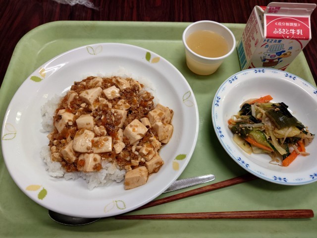 用事のあるときは、ドアをノックして、学年クラス名前を言って、用件を伝えましょう。2日目の給食は、麻婆丼でした。美味しかったですか?