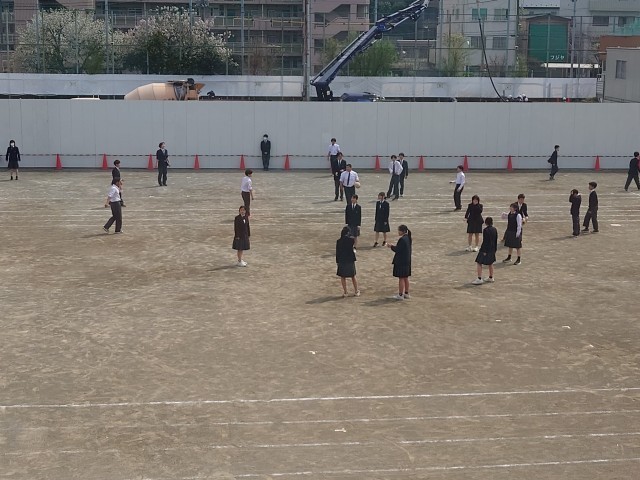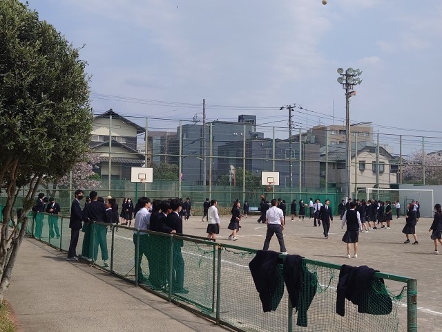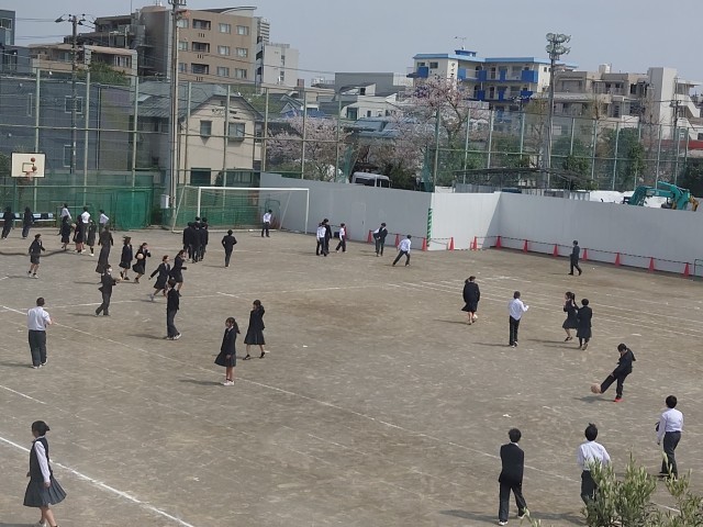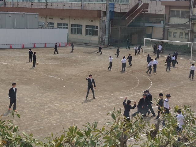 そして、昼休み。1年生も加わって、たくさんの弦中生が元気に校庭で遊んでいます。