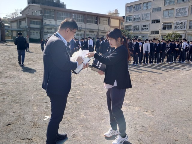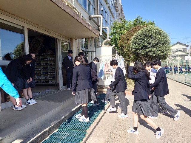 避難訓練1 4月14日(月) 公開日 2025/04/16 更新日 2025/04/16 できごと 大きな地震が起こるという警報が入ったことを想定しての今年度初めての避難訓練を行いました。教室から避難するための避難経路の確認をしました。避難開始から完了まで、約4分半でした。これがスタートです。避難訓練の目的は、災害が起こったときに、自分で適切に行動して、自分の命、周りの人の命を守るための訓練です。毎月一度行います。しっかりと訓練に参加してください。 +5 いいね(0)