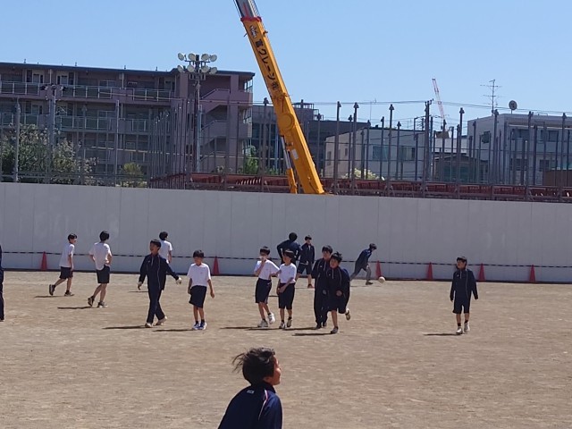 昼休み、校庭で今日も元気に遊ぶ弦中生です。