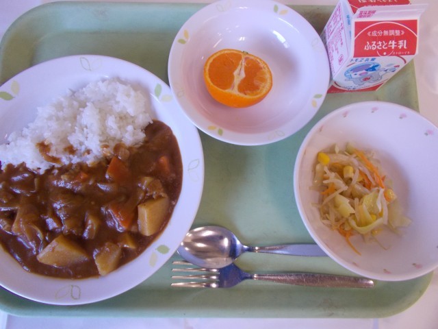 初日の給食は、代表的な人気メニューのカレーライスです。