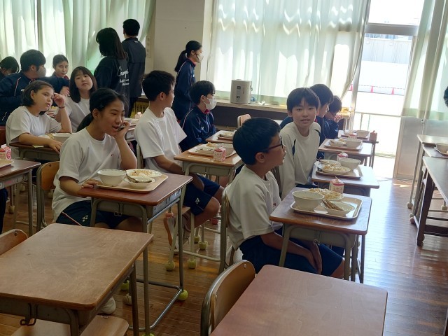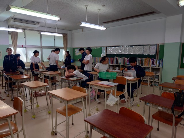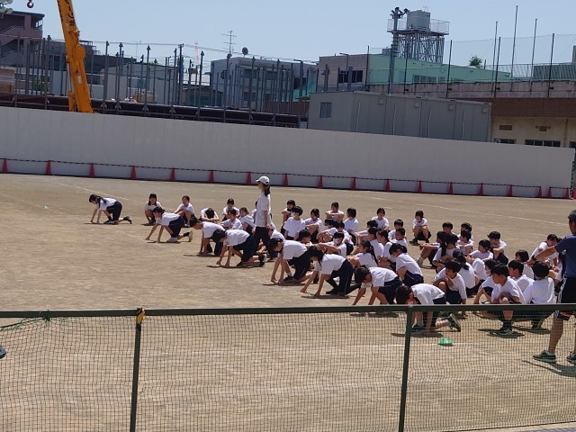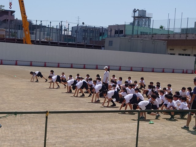 短距離では、小学校ではなかったクラウチングスタートの練習をしていました。I組では、家庭科の授業と数学の授業をグループに分かれて、行っていました。みんな元気に授業を受けていました。